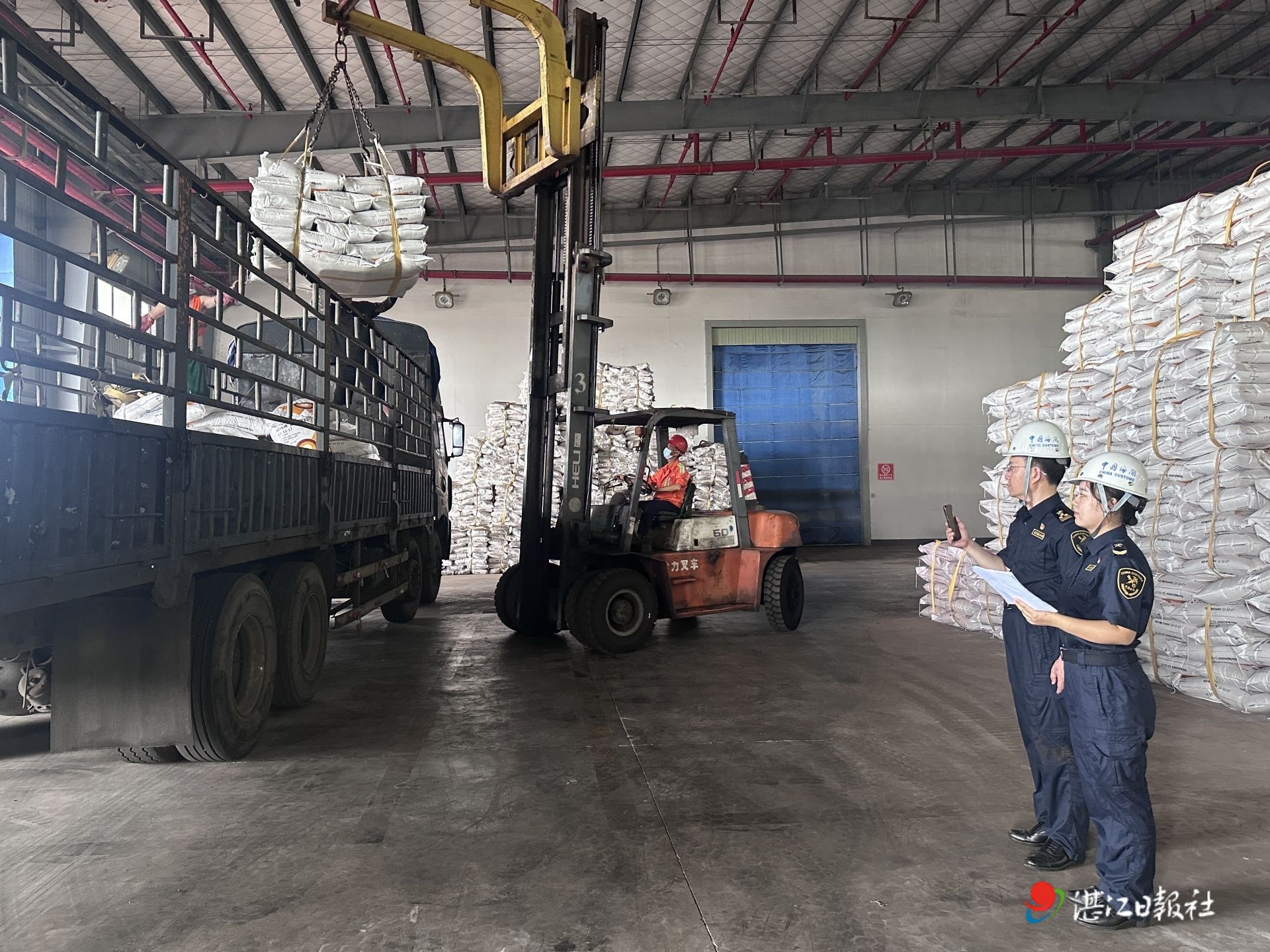 日前,一批184噸計(jì)劃出口的飼料級(jí)磷酸二氫鈣提前從貴州運(yùn)輸?shù)秸拷6愇锪髦行模˙型)(以下簡(jiǎn)稱“湛江B保”),通過(guò)分送集報(bào)模式入?yún)^(qū)暫存。