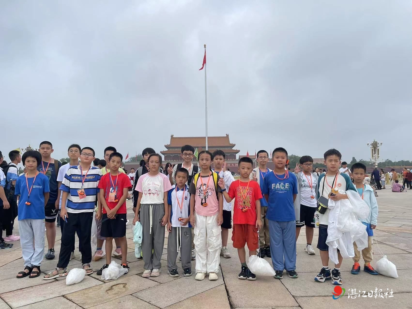 26日,“跟著課本讀北京”湛江日報社2024精品夏令營的第五天,孩子們前往天安門廣場觀看升旗儀式。