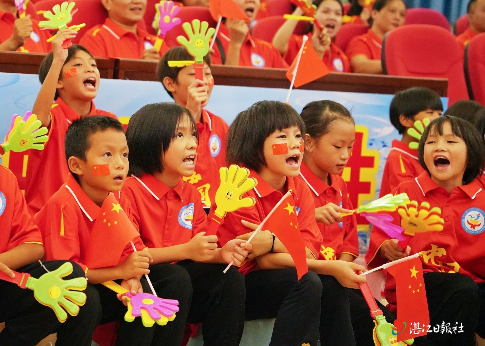 湛江市體校師生為全紅嬋歡呼。 記者 劉冀城 攝