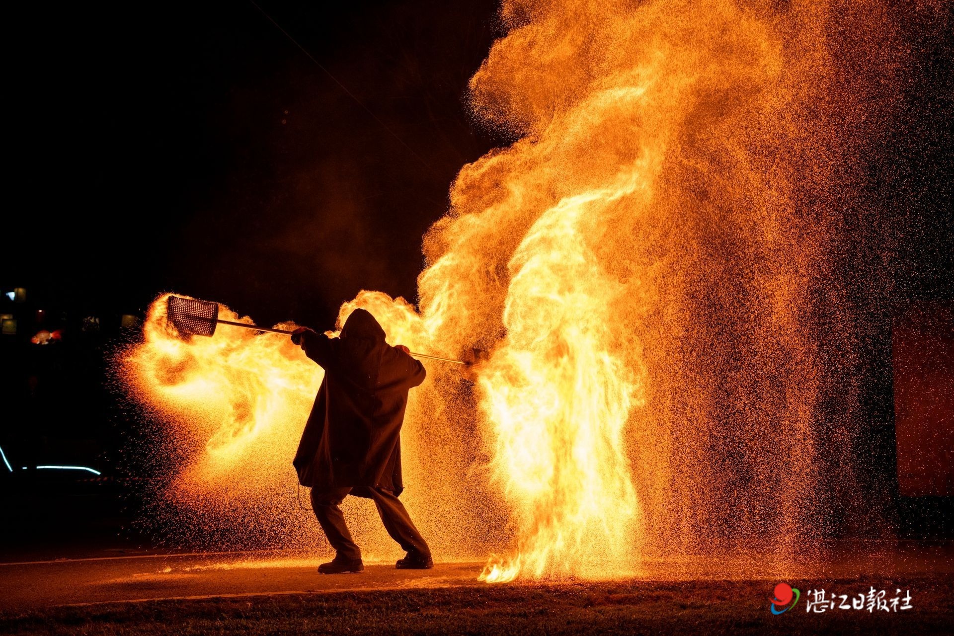 國慶節(jié)期間,非遺“打鐵花”現(xiàn)身我市湖光巖風(fēng)景區(qū),為市民游客帶來視聽盛宴。