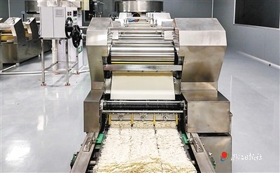 樂田公社食品加工廠的現代化粉面制品生產線產出一串串潔白柔韌的面條。