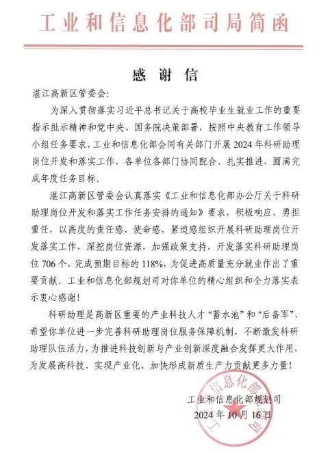 工信部對(duì)湛江高新區(qū)管委會(huì)