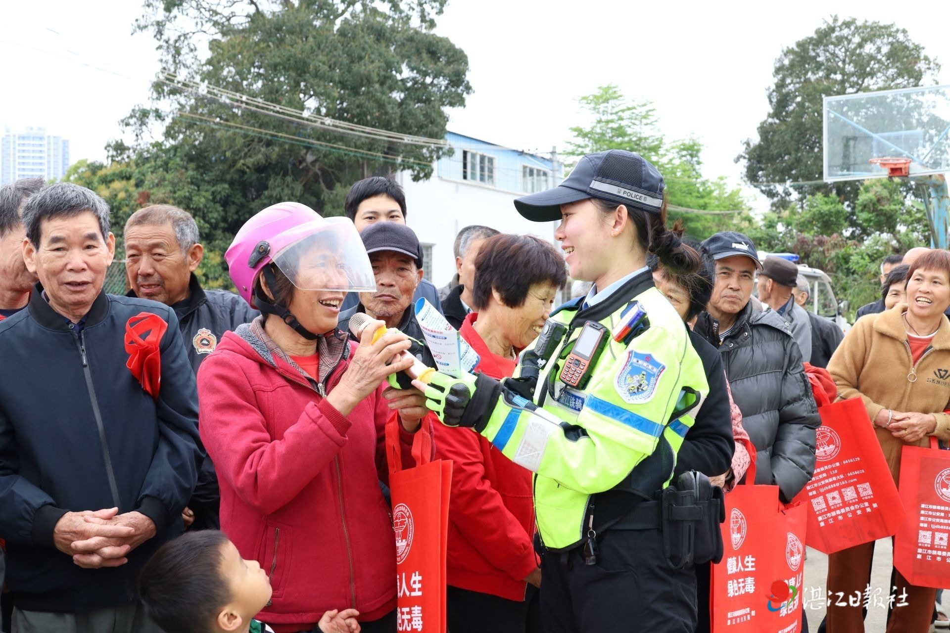 活動當天,工作人員在北部灣大道上的城南街道轄區各村口安裝了醒目的“前方路口 減速慢行”警示標牌。這些標牌不僅為村民出行提供了安全提醒,更是企業在鄉村基礎設施建設中注重細節的體現。與此同時,一批符合國家安全標準的電動車、摩托車頭盔被免費發放到村民手中,宣講員向村民詳細講解了交通法規、安全出行常識以及佩戴頭盔的重要性。