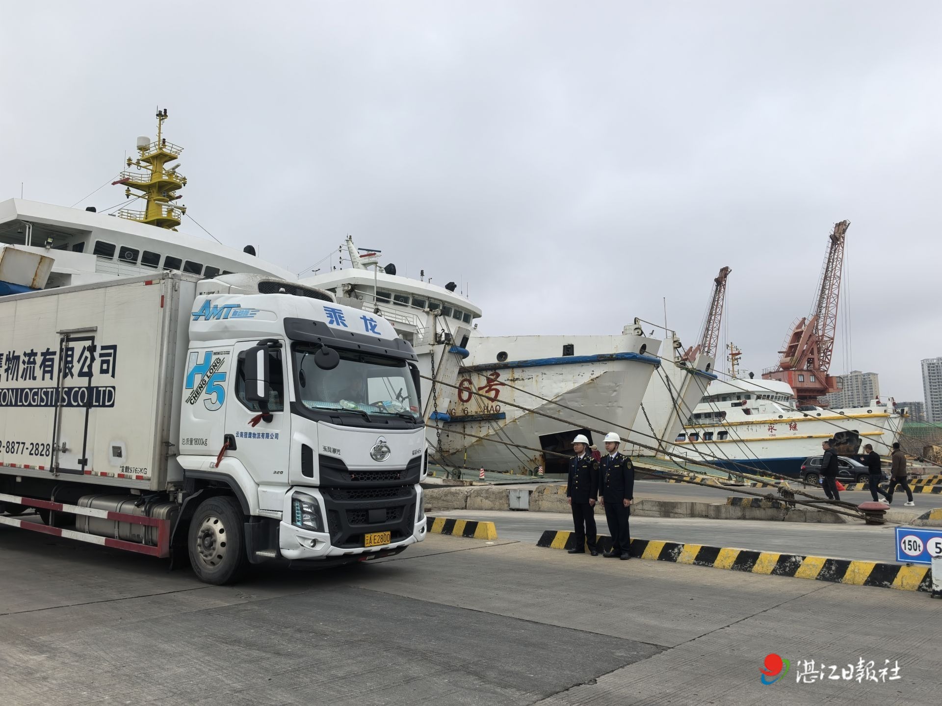 執(zhí)法人員維持車輛下船秩序。湛江海事局供圖