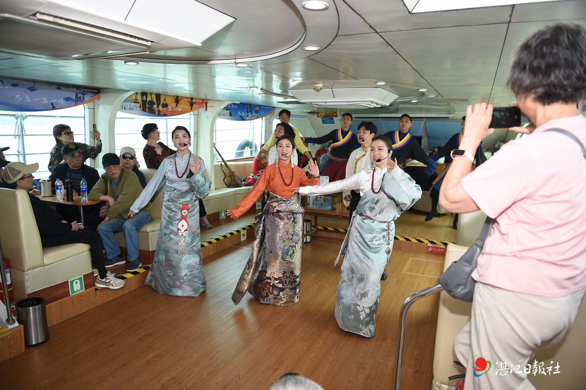來自青海省的舞蹈人員在紅嘴鷗游船上載歌載舞。