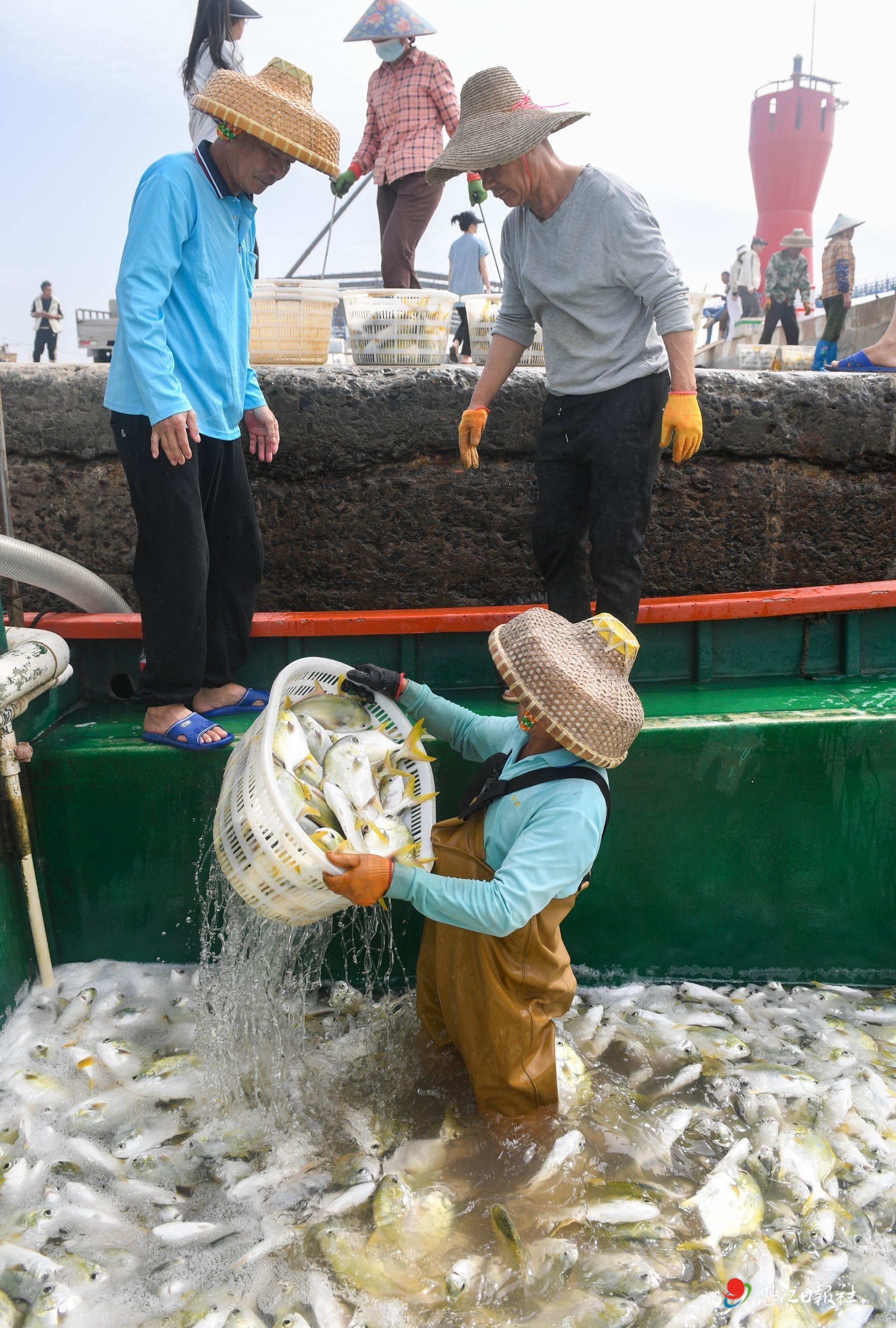 4月14日,雷州覃斗鎮流沙灣海域,南雁海洋牧場的金鯧魚豐收。