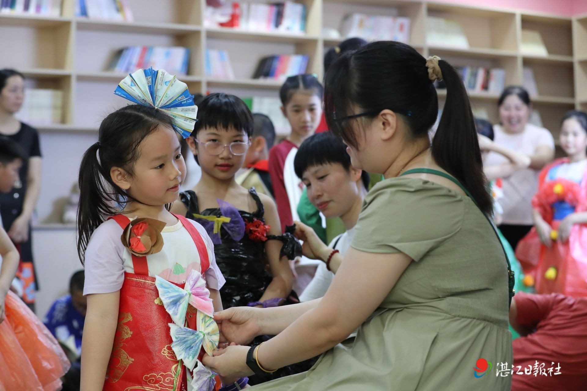 “環保時裝秀”更是將活動的歡樂氣氛推到最高潮,家長和孩子們拿出利用舊報紙、舊紙箱、舊衣物等材料制作好的服裝,孩子們身著這些自制的“藝術品”,自信地邁開步伐激情走秀,環保與時尚的完美融合贏得了現場觀眾給予的陣陣掌聲與喝彩聲。