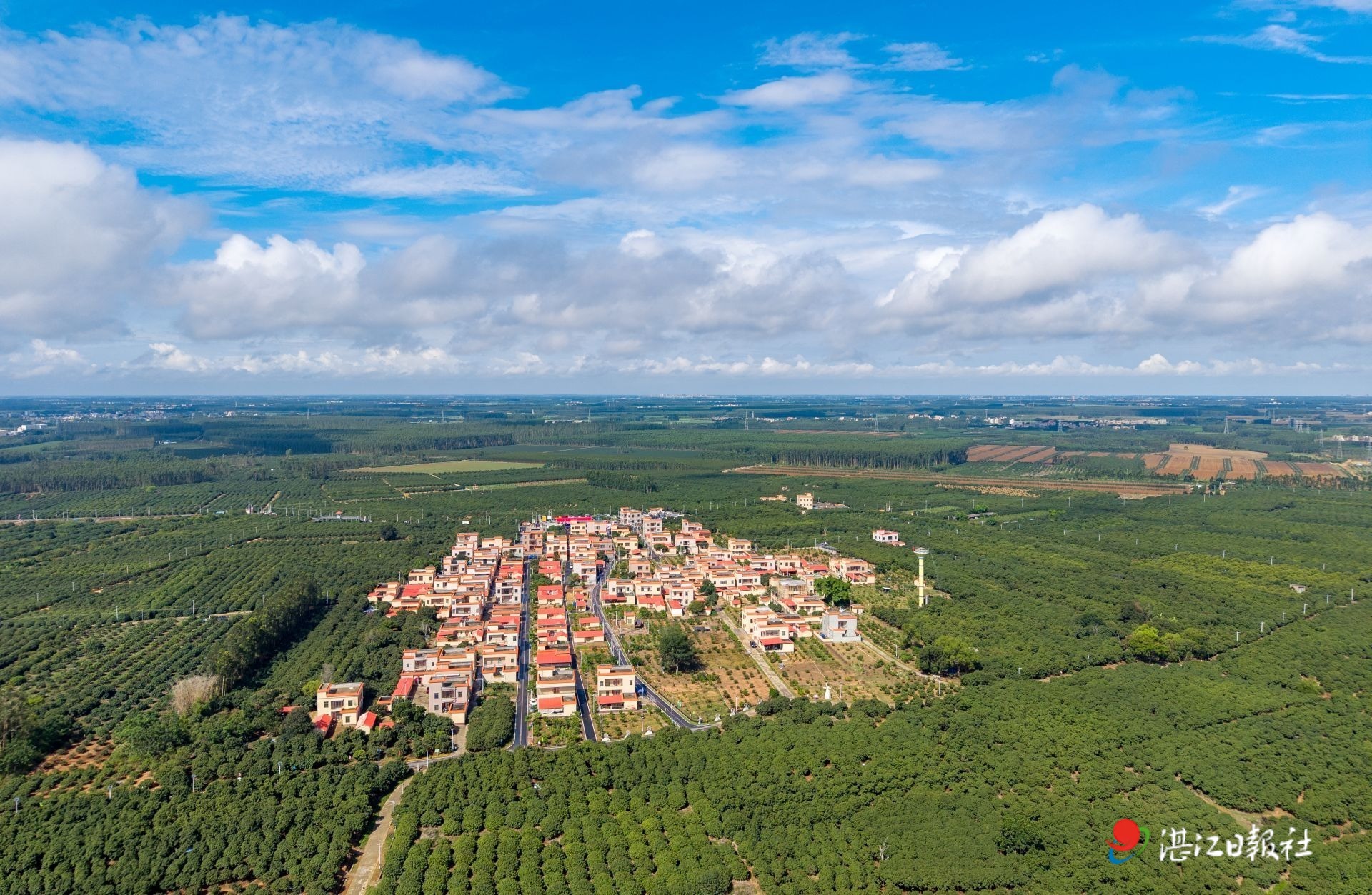 高空俯瞰遂溪縣烏塘鎮(zhèn)新屋村,一個(gè)被荔枝樹包圍的靚麗新農(nóng)村。