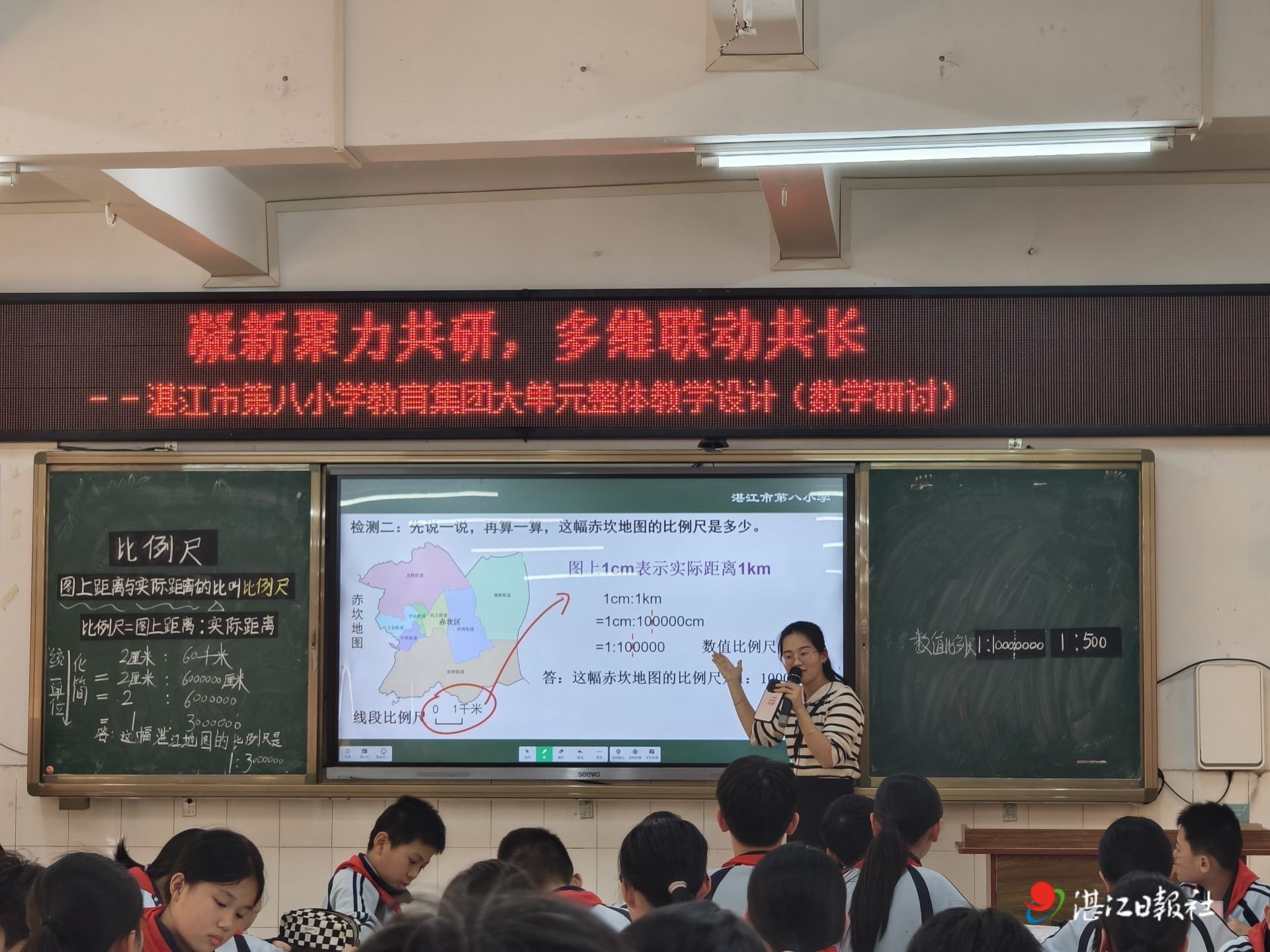 湛江市第八小學教育集團六年級數學單元整體教學設計展示,莫玉玲老師上示范課《比例尺》。湛江市第八小學教育集團供圖