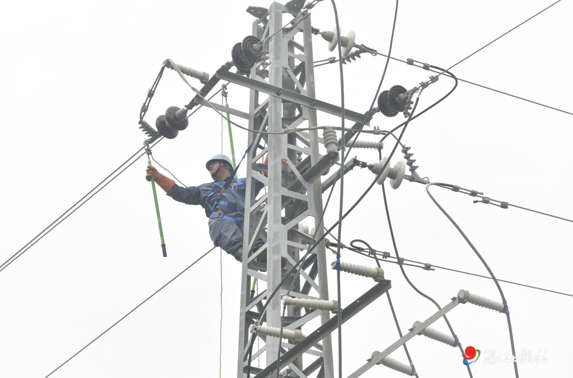 10月6日,徐聞縣新寮鎮八一村,來援的南方電網東莞供電局工作人員在搶修。