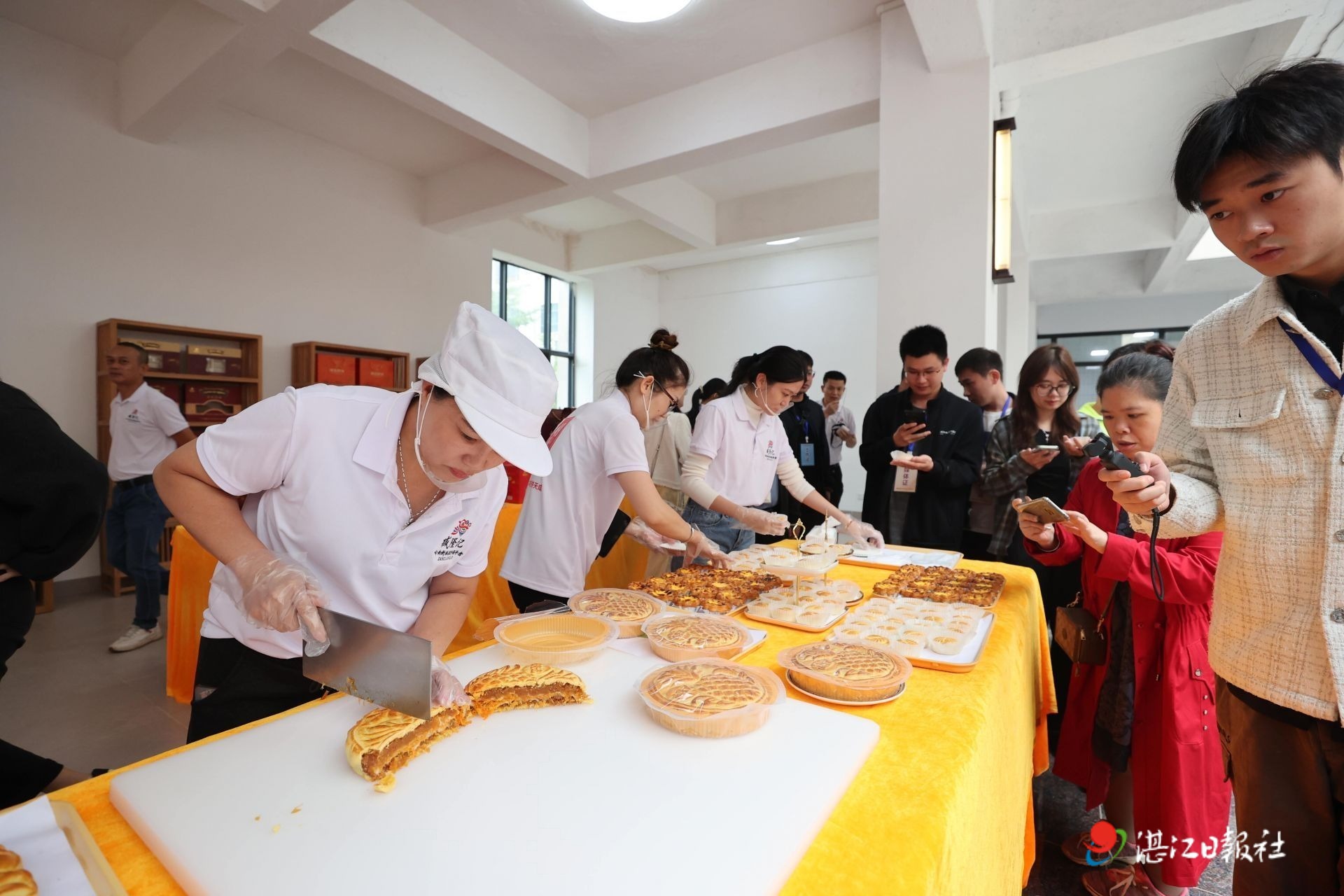 媒體記者團探訪廣東臧隆記食品有限公司,品嘗剛出爐的菠蘿月餅。