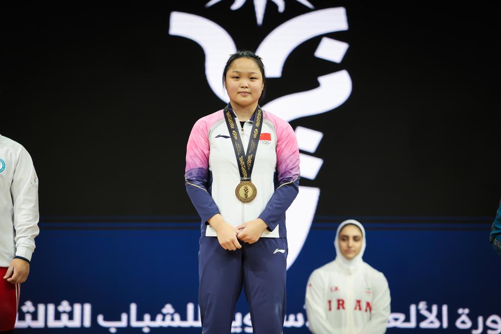 舉重賽場上,朱彩云獨攬女子63公斤級挺舉和抓舉兩枚金牌,抓舉成績刷新亞洲少年紀錄。