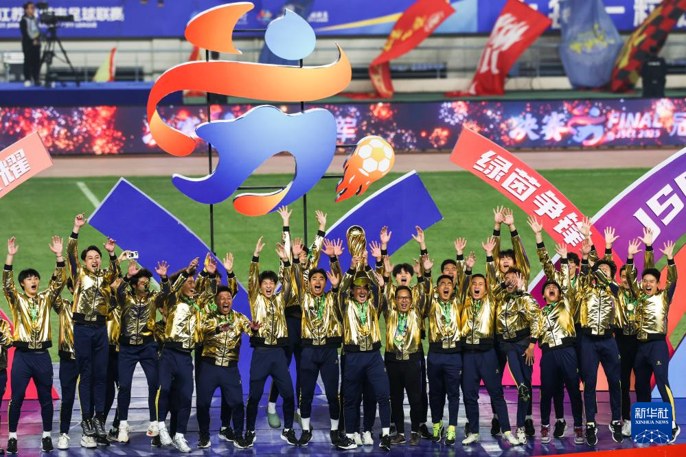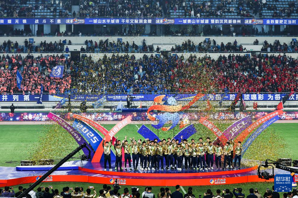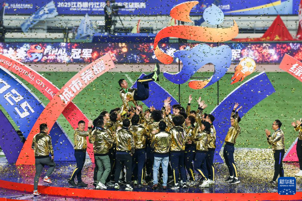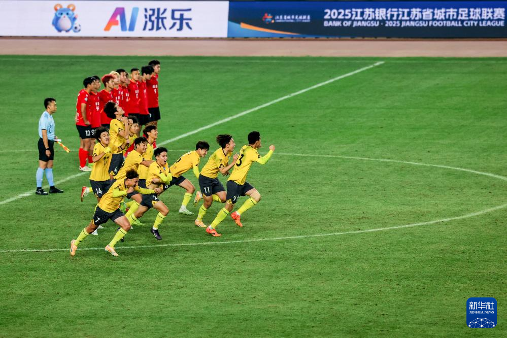 當(dāng)日,在江蘇南京舉行的2025江蘇省城市足球聯(lián)賽(“蘇超”)決賽中,南通隊與泰州隊在常規(guī)時間0比0戰(zhàn)平,通過點球大戰(zhàn),泰州隊總比分4比3戰(zhàn)勝南通隊,奪得冠軍。