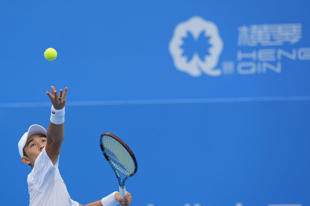 11月12日,北京隊選手商竣程在比賽中發球。新華社記者 顏麟蘊 攝