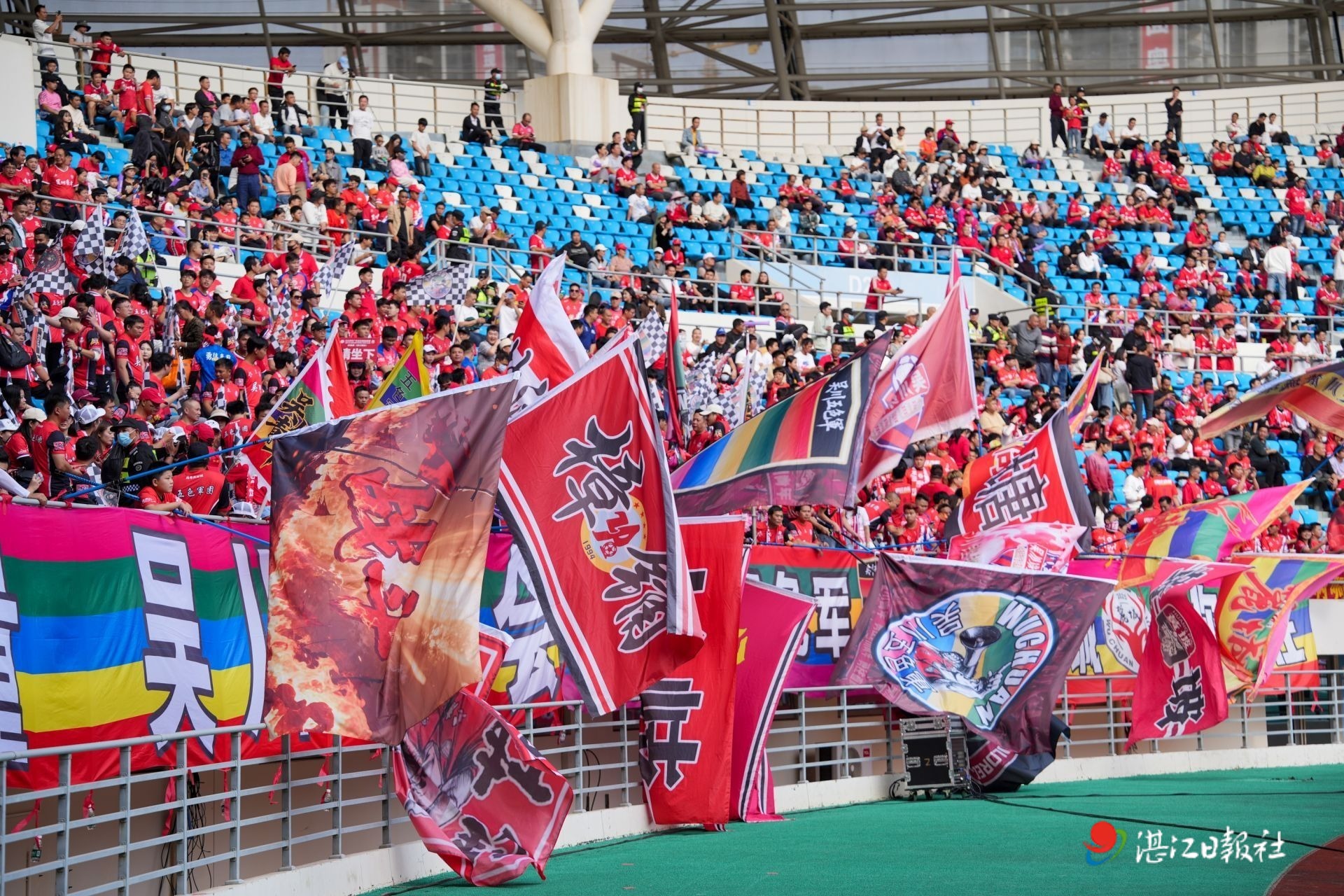 百萬球迷線上搶票,購票系統(tǒng)兩度癱瘓,數(shù)萬張球票早早售罄……開賽前幾日,這些“盛況”便沖上熱搜,預(yù)示著本場比賽的火爆。雖然已經(jīng)有了一定的心理準(zhǔn)備,但當(dāng)記者23日中午來到湛江奧體中心時,還是被所見所聞深深震撼了。當(dāng)時離開賽還有三個多小時,已經(jīng)有大批球迷從四面八方陸續(xù)趕來,揮著旗、打著鼓,繞著奧體中心進(jìn)行“暖場”。其中,有身殘志堅、坐著輪椅的女球迷,有從外地專程返鄉(xiāng)的普通打工族。對于他們而言,這不僅是一場球賽,更是一個展示足球之鄉(xiāng)深厚底蘊(yùn)和球迷文化的節(jié)日。